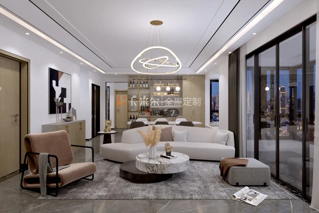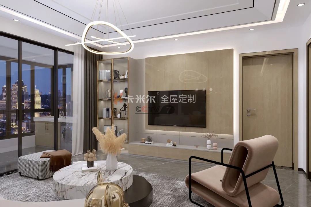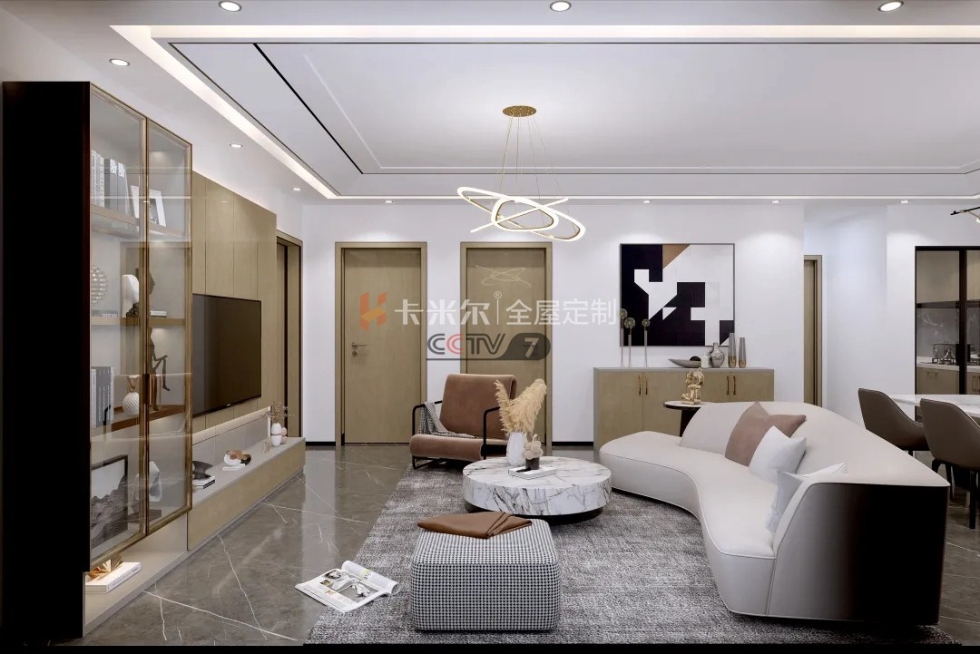 客廳以簡(jiǎn)約的線條呈現(xiàn),從大空間到小細(xì)節(jié),電視柜與沙發(fā)等家具都相互呼應(yīng)。電視柜輕奢優(yōu)雅又不失大都會(huì)輕快質(zhì)感,晶瑩剔透的烤漆表面,以及鋁框玻璃門,使得整個(gè)柜體奢華而不浮夸,非常精美。