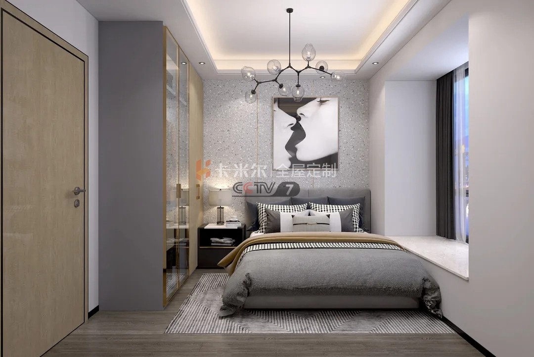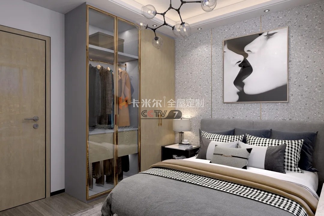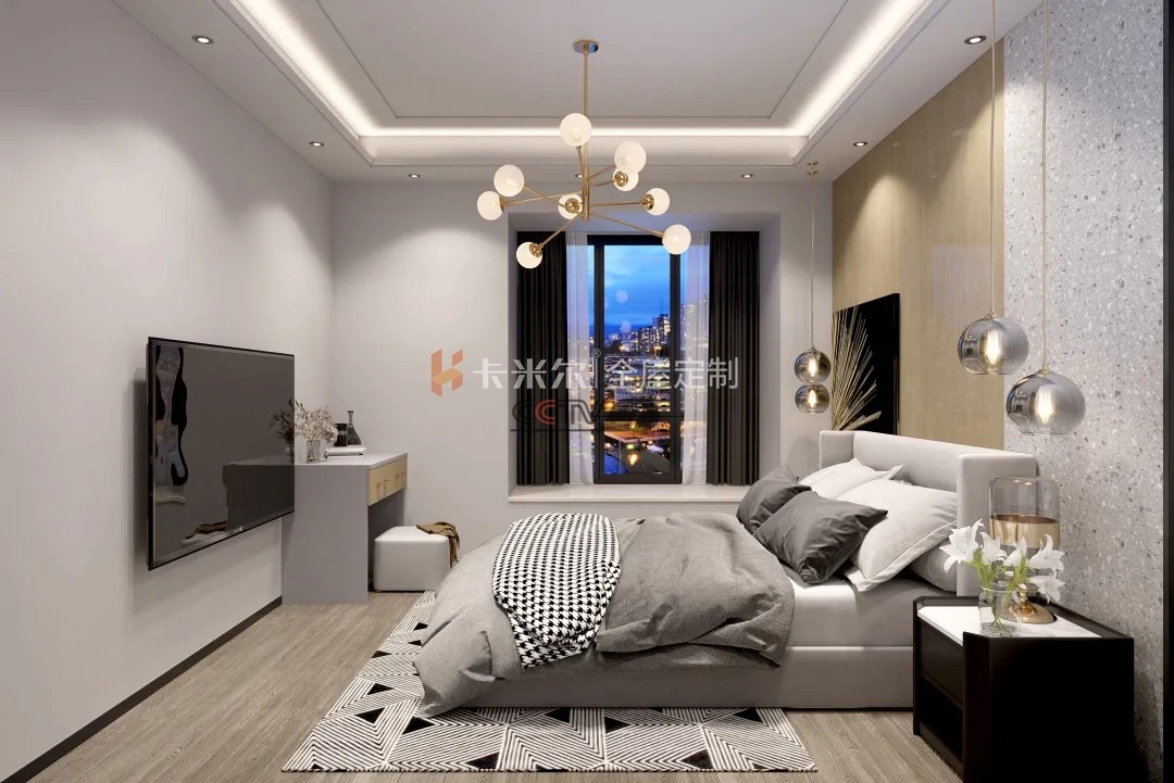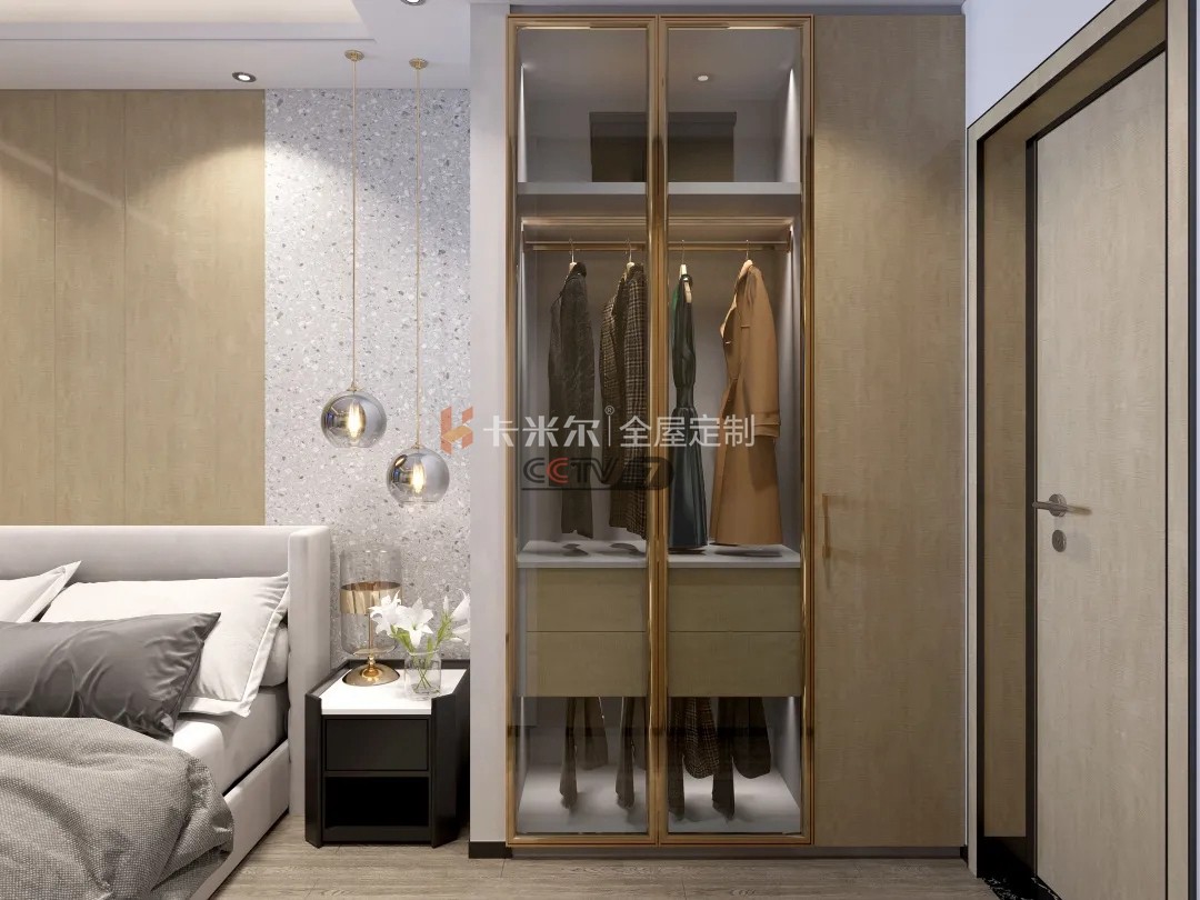 高雅的色彩讓主臥散發(fā)著舒適又輕奢之氣,一堆設(shè)計(jì)在門邊對(duì)稱而立,并且透露著時(shí)尚的金屬質(zhì)感,使空間增添了魅力與情趣。