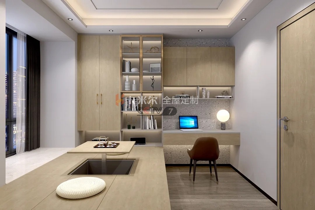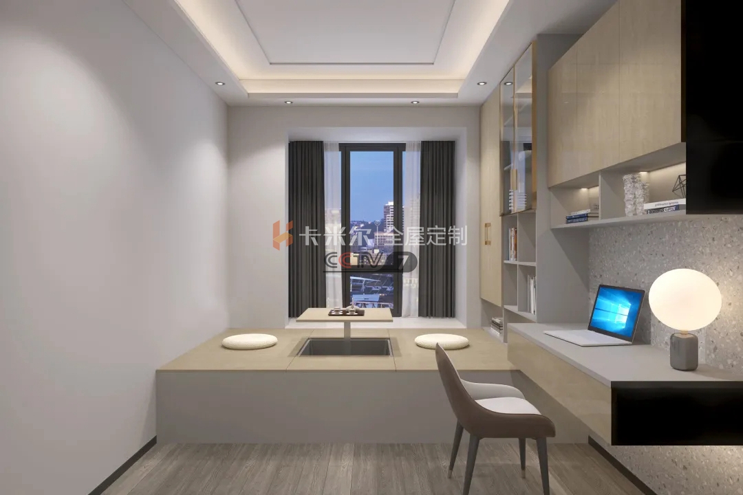 沉穩(wěn)的格局設(shè)計(jì),營(yíng)造一個(gè)靜謐高雅、舒適和諧的榻榻米空間,學(xué)習(xí)桌、書柜、儲(chǔ)存柜與榻榻米一體的設(shè)計(jì),節(jié)省了不少工序與空間,并且這個(gè)空間集多種功能于一室,實(shí)用性很強(qiáng),簡(jiǎn)單地演繹低調(diào)奢華的生活體驗(yàn)。