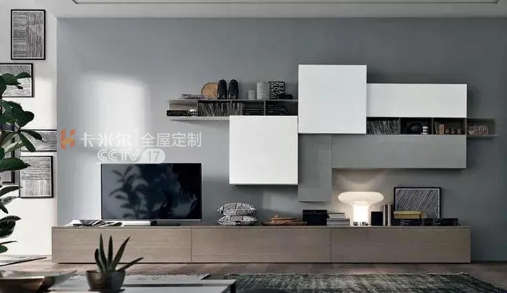 內(nèi)嵌于墻面的電視柜最節(jié)省空間,根據(jù)墻面特點(diǎn)和電視的大小,現(xiàn)場(chǎng)定制收納柜,容量大又整齊,可以滿足大部分的公共物品收納或圖書、藏品的收納。