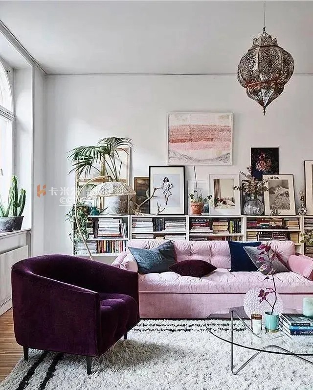 如果平時(shí)喜歡坐在沙發(fā)上看書,則可以將沙發(fā)不靠墻擺放,巧妙地利用沙發(fā)邊柜作為背景。使得沙發(fā)看起來不再孤立無援,又大大增加了物品擺放的空間。邊柜柜面上可以擺放臺(tái)燈、相框、飾品,柜里則可以塞進(jìn)大摞的書籍和生活用品。