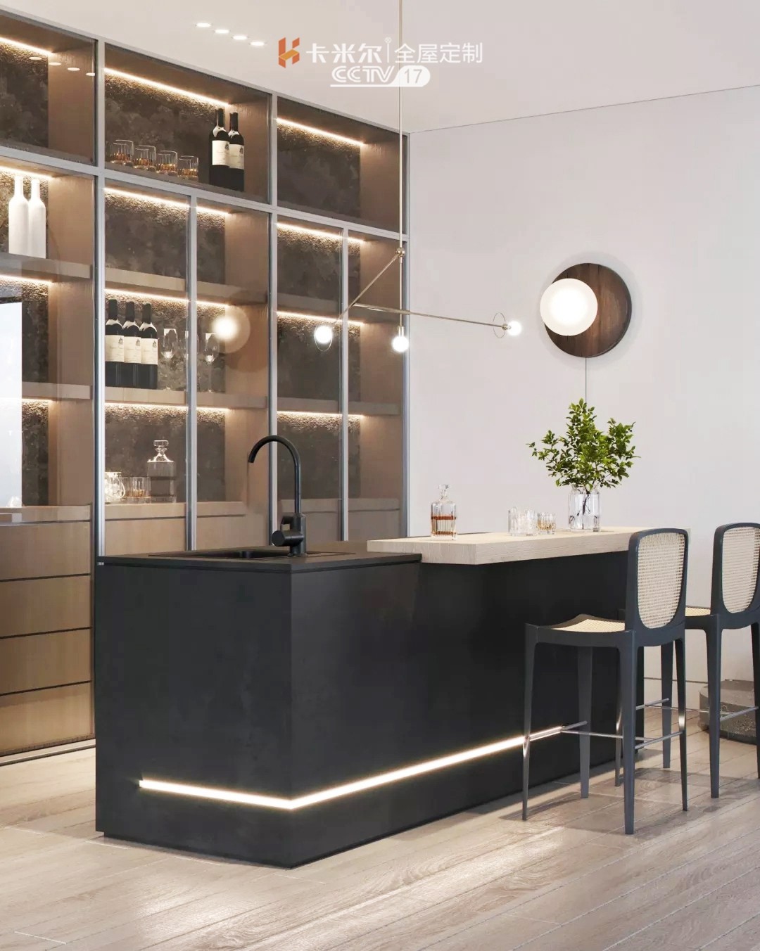 展示功能:開放式酒柜除了擺酒,還可以臨時(shí)放湯鍋、飯鍋,也可以在上面擺放裝飾品,讓空間顯得大氣有檔次;