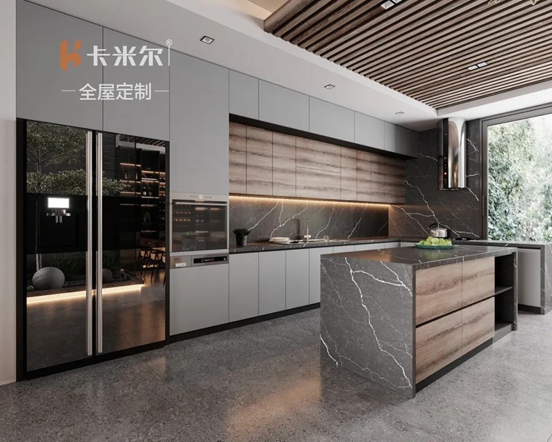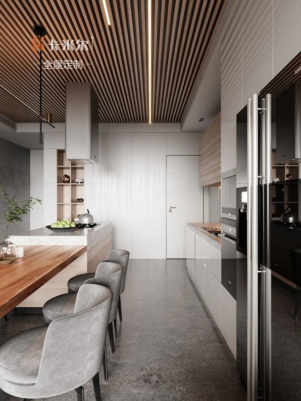 廚房設(shè)計(jì)延續(xù)客廳色彩基調(diào),秉持簡約時(shí)尚的原則,將空間質(zhì)感完美打造。L型的廚房布局設(shè)計(jì),開放的空間體現(xiàn),將功能與極簡主義生活方式完美詮釋。
