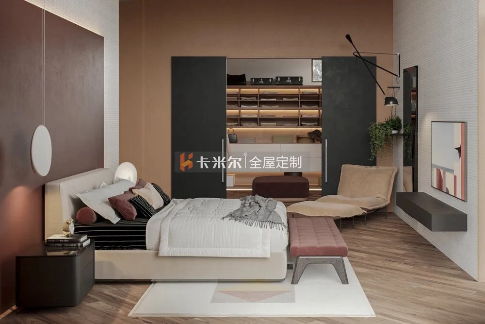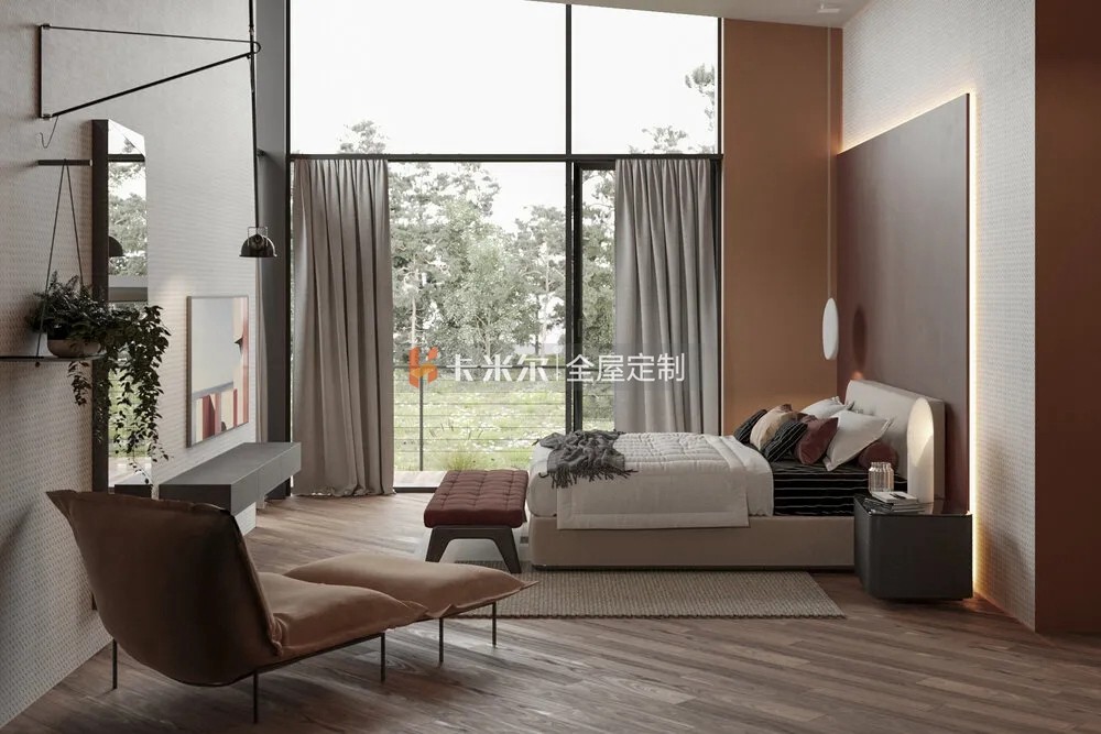 臥室空間奢侈、生活、品味、享受是空間的設(shè)計(jì)理念,和諧與統(tǒng)一中找到突破點(diǎn),整體比例考究,造型精煉,通過細(xì)節(jié)和色彩造型、勾勒出一個(gè)精致優(yōu)雅的輕奢空間,彰顯低調(diào)與浪漫。
