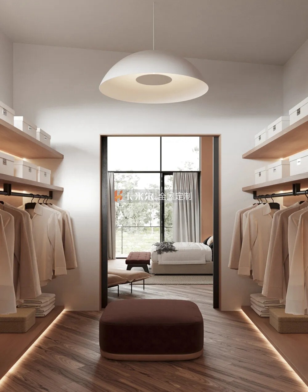 衣帽間有著內(nèi)斂卻強(qiáng)烈的表達(dá)欲望,仿佛間接向主人傳達(dá)“自信即是美”的闊達(dá),禮贊生活格調(diào),于一絲靜謐恬淡中感受簡(jiǎn)潔外表下的精致。