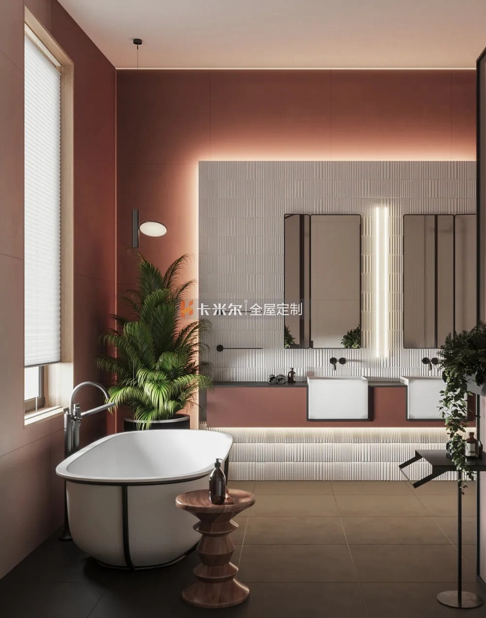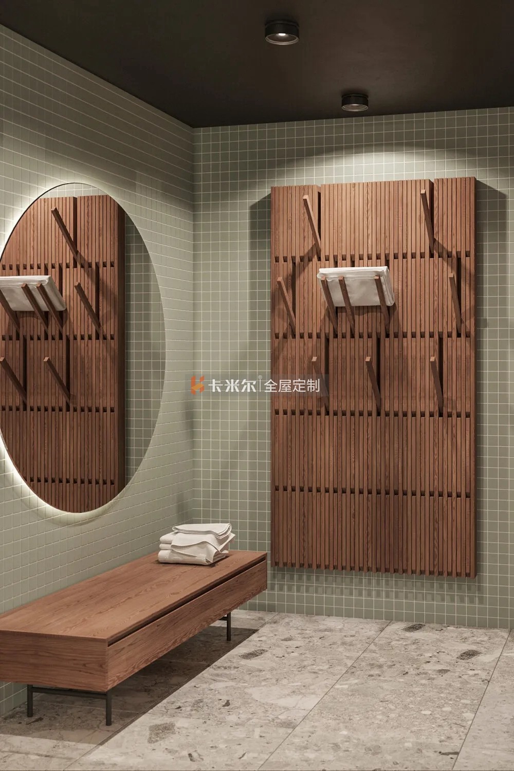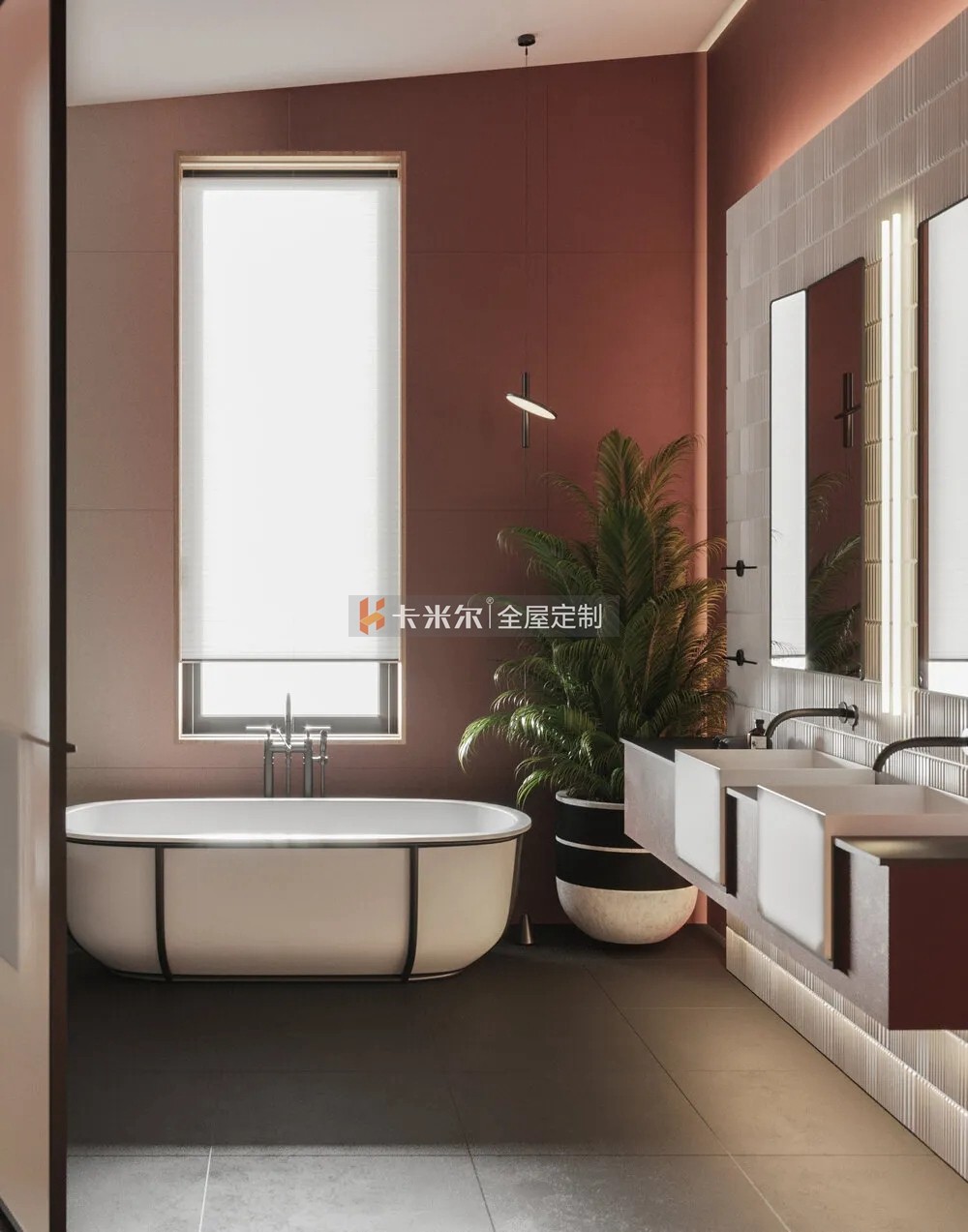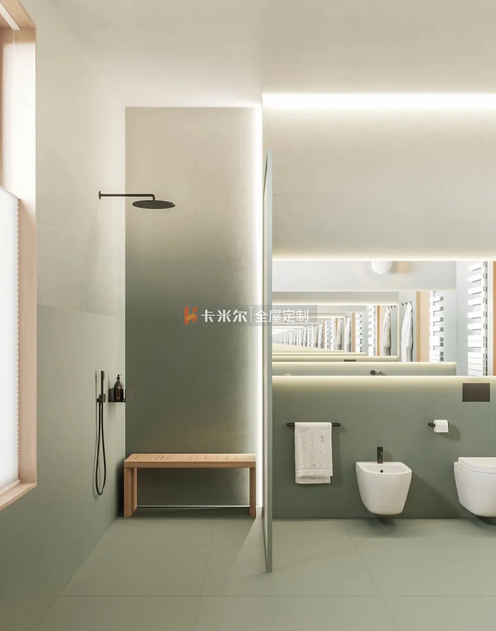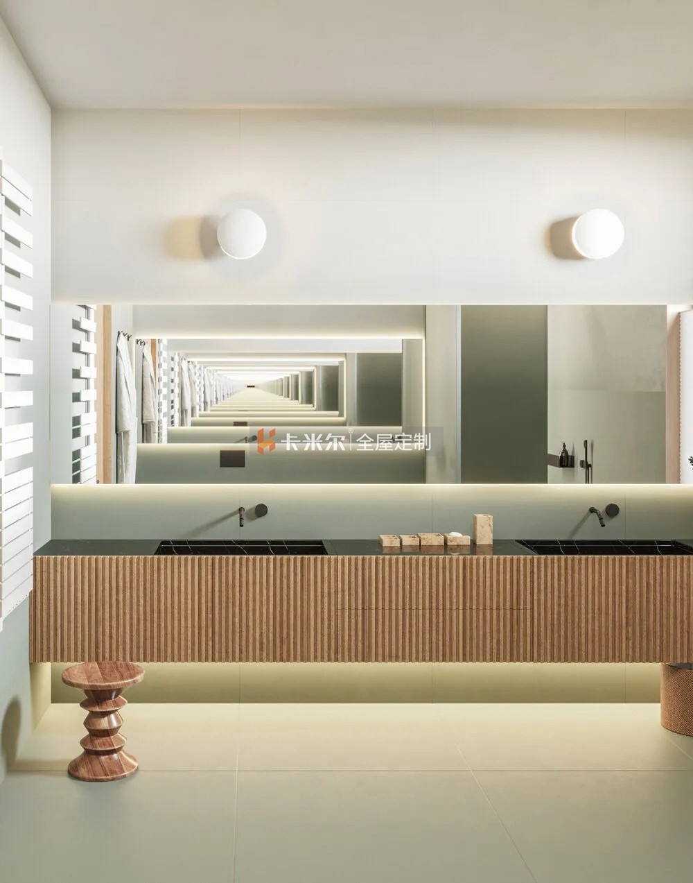 衛(wèi)浴間典溫潤(rùn)木紋搭配冰冷大理石,看似違和實(shí)則統(tǒng)一和諧,材質(zhì)的選擇也是功能區(qū)的劃分,裝飾畫的選擇也是對(duì)整體家居色彩的呼應(yīng),所以細(xì)節(jié)都是對(duì)生活的致敬。