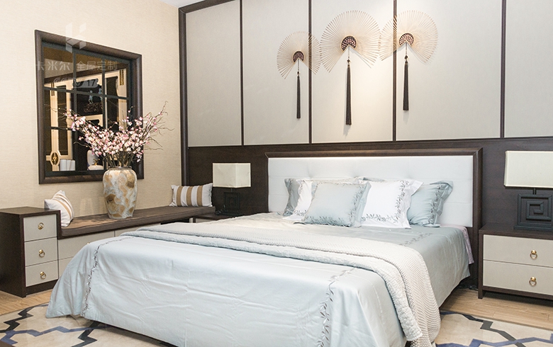 臥房對稱均衡的整體布局,中式傳統(tǒng)沉穩(wěn)色調(diào)的大量應(yīng)用,加上大面積使用護(hù)墻板,冬暖夏涼、隔音防潮,配合溫婉爾雅的家具擺放,宛若唐詩宋詞中走出來的景致。