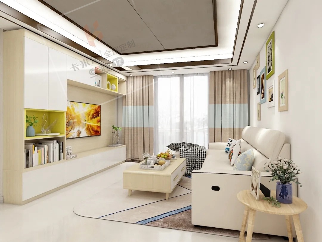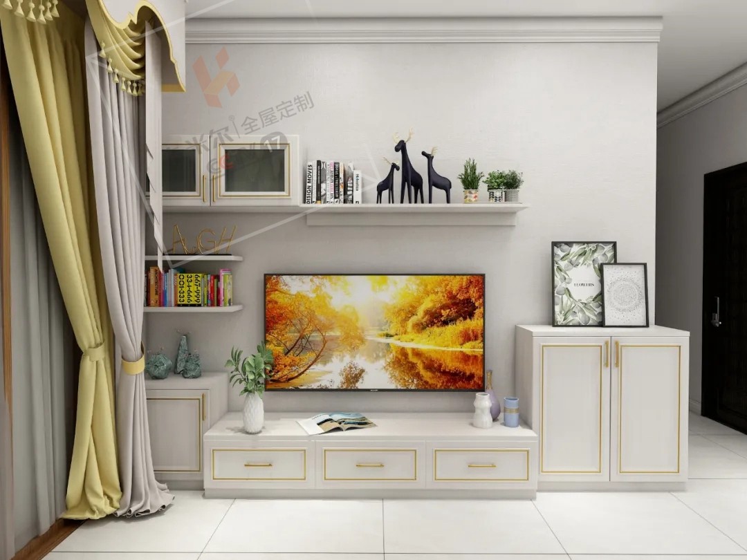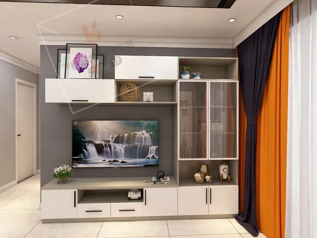 客廳電視柜擁有更多收納空間,也達(dá)到整潔美觀的效果。主要用來陳列和擺放一些精致的藝術(shù)品、收藏等,裝飾性強。
