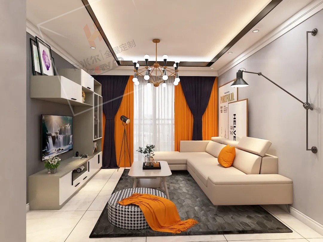 溫暖的鮮橙色調(diào)讓人倍感溫馨,客廳布局十分簡約,撞色搭配的窗簾、看似無意搭配的抱枕和毛毯,極富設(shè)計感和時尚感,暖暖的氛圍讓家的氣味更香甜。