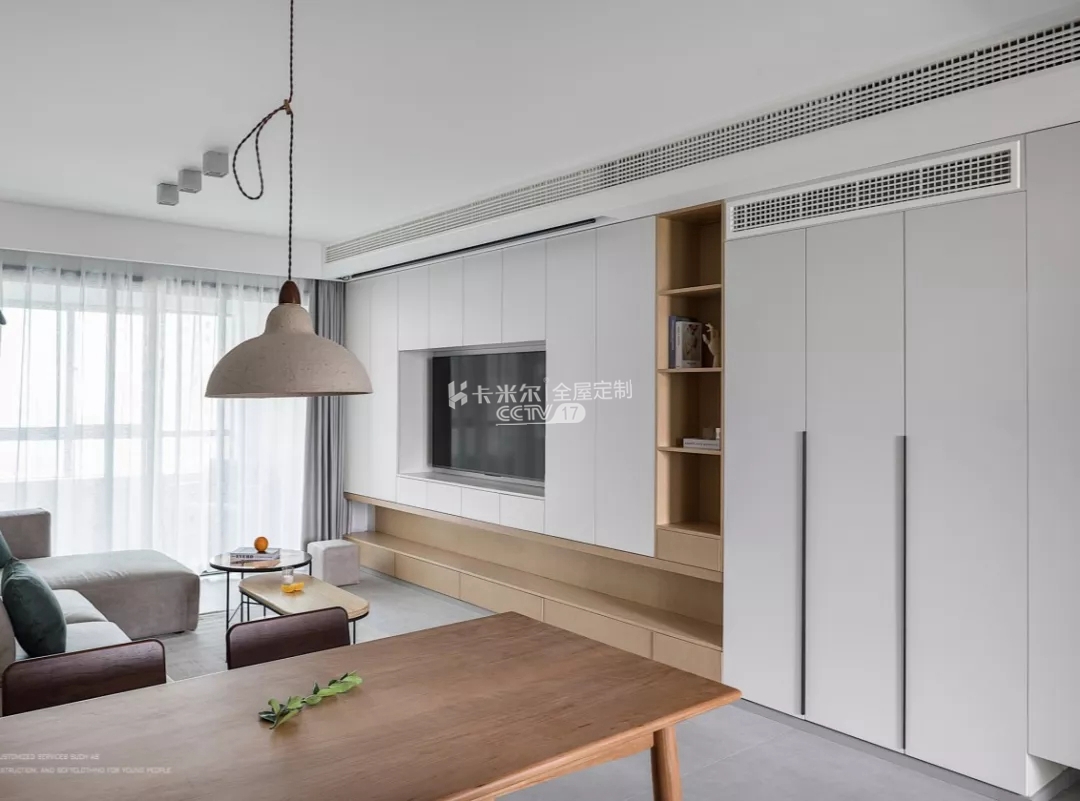 到底是購(gòu)成品,還是定制?在面積滿足的情況之下,還要根據(jù)自身的需求來(lái)選擇,想讓客廳兼具書(shū)房?jī)?chǔ)書(shū)的功能,那就可以定制書(shū)柜組合電視柜,高效利用空間的同時(shí),還能切合實(shí)際需求,更節(jié)約成本。